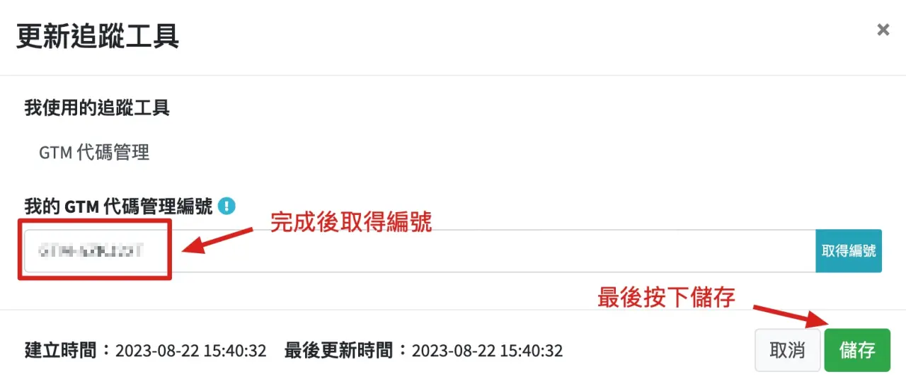 取得管理編號後,最後按下儲存