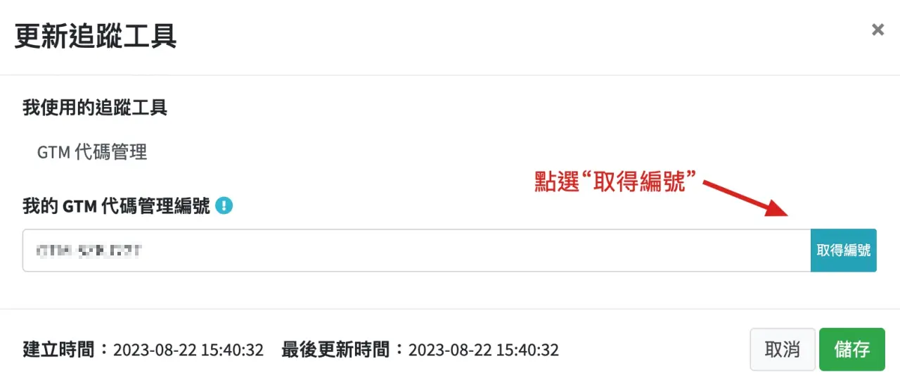 並於下方可以確認“行銷代碼”的設定狀態
